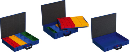 "longDescription": "<h2>Sortimentskoffer</h2><strong>Inhalt durch gepolsterten Deckel vor verrutschen geschützt</strong><br><ul><li><strong>Für den professionellen Einsatz</strong> - Koffer aus Stahlblech mit kratzfester Pulverbeschichtung</li></ul><strong>Sie haben die Wahl:</strong><br><ul><li><strong>Zur individuellen Bestückung oder sofort einsatzbereit</strong> - Koffer wahlweise leer oder mit herausnehmbaren Einsatzkästen aus Polystyrol</li></ul>",