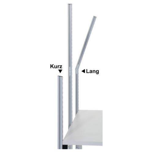 "longDescription": "<h2>Anbauprofile lang - gerade</h2><p>Mit Anbauprofilen, Ablageböden und Zwischenböden können Sie Ihren Packtisch systematisch erweitern und effizient gestalten. Durch Trennbleche und Auszugsböden können Sie individuelle Anpassungen vornehmen. Besonders praktisch: Mit Spaltabdeckungen können störende Spalten verdeckt werden glatte Arbeitsflächen geschaffen werden. Um die Fläche von schrägen Ablageböden ideal zu nutzen, können Anschlagkanten angebracht werden.- (A) Ablageboden Typ A und B : Die Ablageböden lassen sich ohne Werkzeug einfach in die Systemlochung der Anbauprofile einhängen. Dabei entscheiden Sie individuell, ob ein- oder zweiseitig, ob gerade (Typ A) oder geneigt (Typ B) zum Anbauprofil. Neigungen von -20', 0' und +20' sind möglich.- (B) Anbauprofil gerade lang/kurz:Die Anbauprofile erhalten Sie in zwei Längen. Sie sind unabhängig vom Tischfuß montierbar und damit auch horizontal variabel anbringbar. Durch die durchdachte Rasterlochung an den Stirnseiten werden ganz ohne Schrauben Ablageböden, Auszugsböden und anderes Zubehör sekundenschnell ein- bzw. umgehängt. Seitliche Nuten ermöglichen darüber hinaus die stufenlose Montage von Lochrückwand, Monitorarm und Ähnlichem. Darüber hinaus kann der obere Teil der langen Anbauprofile mit einer 20 Grad Neigung montiert werden, wodurch die Griffposition der Ablagen deutlich verbessert wird. Diese Eigenschaften fördern ergonomisches Arbeiten und tragen damit auch zu einer höheren Produktivität der Mitarbeiter bei.- (C) Auszugsboden: Der Auszugsboden ist optimal für Labelprinter und sonstige Drucker geeignet. Je nach Bedarf können Sie den Boden in die Nuten der Anbauprofile schrauben oder zur flexiblen Höhenverstellung die Rasterlochung nutzen.Der Auszugsboden ist mit max. 40 kg Flächenlast belastbar.- (D) Ziwschenboden Standard:Dieser Zwischenboden kann mit maximal 50kg Flächenbelastung belastet werden. Mit diesem Zwischenboden kann die Höheneinstellung manuell eingestellt werden.- (E) Spaltabdeckung: Mit unserer Spaltabdeckung zur Montage zwischen den Anbauprofilen erhalten Sie eine durchgängig geschlossene Ablagefläche (bei beidseitiger Montage der Ablageböden).- (F) Trennblech zum Einstecken in AblagebödenDas Trennblech kann einfach in die Lochraster der Ablageböden gesteckt werden. Durch diese Trennbleche kann das Regal übersichtlich und strukturiert gestaltet werden.- (G) Kleinteilfach ausziehbar für Ablageboden:Das praktische Fach für Kleinteile ist horizontal verschiebbar und kann einfach an den Ablageböden montiert werden. Das Kleinteilfach hat eine Tragfähigkeit bis 15kg. Erhältlich für 800 mm tiefe Ablageböden und für 1000 mm tiefe Ablageböden.- (H) Anschlagkante:Hält trotz Neigung alles sicher am Platz: Wird vor den Ablageboden geschraubt. Die durchgängige Kante ermöglicht die volle Nutzung der Ablageböden. Bei uns können Sie Ihren Packtisch mit sämtlichen Elementen ausstatten.Neben unseren Anbauprofilen und Ablageböden, Arbeitstischen, dem passenden Hakensortiment für Lochrückwände , den Tischgestellen und Arbeitsplatten sowie dem EDV- und Technikzubehör finden Sie bei uns daher eine großzügige Auswahl an Komponenten für Ihren Packtisch.</p><br>",