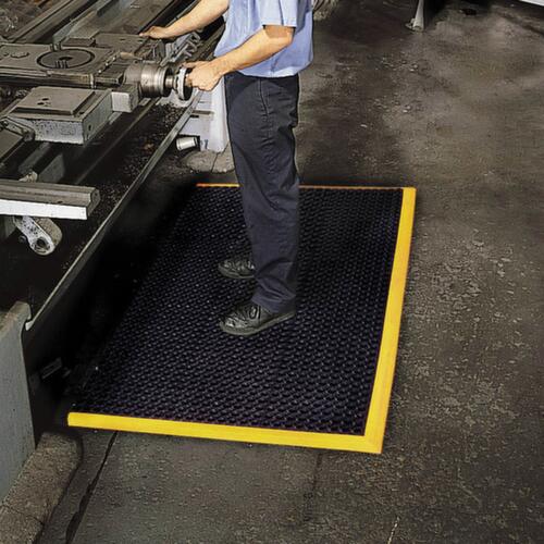"longDescription": "<h2>Anti-Ermüdungsmatte Groningen</h2><strong>Flüssigkeiten und Verschmutzungen können einfach durchfallen</strong><br><ul><li><strong>Langlebig</strong> - gute Beständigkeit gegen Chemikalien und Öle</li><li><strong>Widerstandsfähig</strong> - aus Gummi</li><li><strong>Rutschfest und trocken</strong> - mit durchbrochener Oberfläche</li><li><strong>Verringert das Stolperrisiko</strong> durch abgeschrägte Kanten in auffälliger Farbe</li><li><strong>Kein Flüssigkeitsstau</strong> - mit Drainagesystem zum permanenten Ablauf</li></ul>",