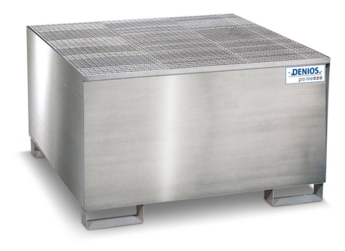 "longDescription": "<h2>Edelstahl-Auffangwanne pro-line</h2><strong>korrosionsgeschützt und robust</strong><br><ul><li>Geeignet für wassergefährdende, entzündbare und aggressive Stoffe</li><li><strong>Höheres Auffangvolumen</strong> durch herausnehmbares Gitterrost</li><li><strong>Rostfrei und korrosionsbeständig</strong> - aus Edelstahl 1.4301</li><li><strong>Für den Staplertransport geeignet</strong> durch praktische Unterfahrhöhe</li></ul><br><strong>Sie haben die Wahl:</strong><br><ul><li><strong>Rundum rostfrei oder mit Stahl kombiniert</strong> - mit Gitterrost aus wahlweise Edelstahl oder feueverzinktem Stahl</li><li><strong>Für den kleinen oder großen Bedarf</strong> - mit Kapazität für 200-Liter-Fässer oder KTC-Container</li></ul>",