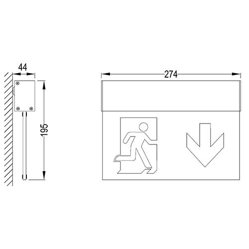 Merkmale:Aus Plexiglas, Gehäuse aus Aluminium. Schutzart IP40: Fremdkörper > 1mm, kein Wasserschutz. Funktionen: AUTOTEST-Funktion, Signalisierung über 2 LED, inklusive Prüftaster. Außerdem lässt sich die Leuchte von Dauer- auf Bereitschaftsschaltung umschalten.