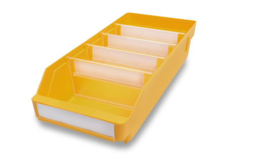 Aus bruchsicherem Polypropylen, in gelb. Seitliche Nutenführungen und Bodenfixierungen ermöglichen das Einstecken von Querteilern und erlauben somit eine individuelle Kasten-Unterteilung. Sichtöffnung. Mit Etikettierfläche. Temperaturbeständig von -20 °C bis +80 °C. Material Lebensmittelgeeignet.