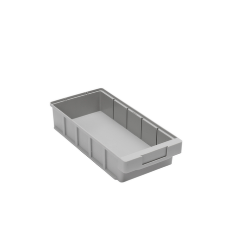 Aus bruchsicherem Polypropylen, in grau. Boden geschlossen mit Verstärkung durch Verstärkungsrippen. Einfacher Transport durch stirnseitige Griffmulde.