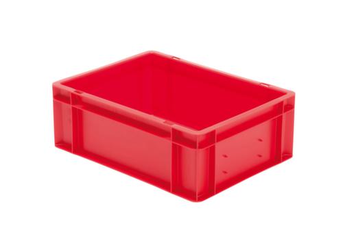 Maßlich auf die Europalette abgestimmt. Aus bruchsicherem Polypropylen in rot. Wände geschlossen, Boden geschlossen. Mehrfach stapelbar. Lebensmittelgeeignet. Für Rollenbahnen geeignet. Temperaturbeständig -20 °C bis +80 °C. Geeignet für verschiedene Stoffe, bitte anfragen.