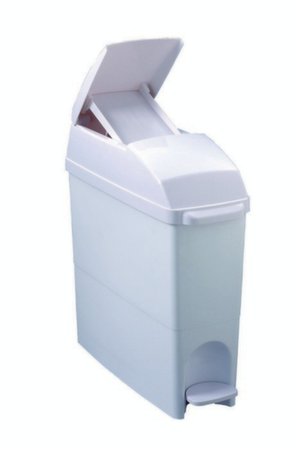 "longDescription": "Tretabfalleimer für die Damenhygiene, Korpus aus Polypropylen weiß, Betätigung per Pedal, 18L,<br>",