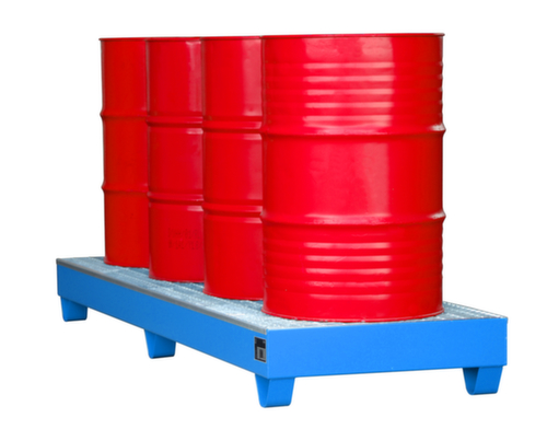 "longDescription": "<h2>Auffangwanne</h2><strong>für die sichere Lagerung unter Dach</strong><br><ul><li>Geeignet für wassergefährdende und brennbare Stoffe</li><li>Robuste Stahlblechkonstruktion</li><li><strong>Für den Staplertransport geeignet</strong> durch praktische Unterfahrhöhe</li></ul><br><strong>Sie haben die Wahl:</strong><br><ul><li><strong>Langlebig oder auffällig</strong> - Oberfläche feuerverzinkt oder mit farbiger Lackierung</li><li><strong>Für noch mehr Auffangvolumen</strong> wahlweise mit herausnehmbarem Gitterrost</li></ul><br><strong>Bestimmungen!</strong><br><br>Bauweise der Wannen behördlich zugelassen. Einsatz für gewässergefährdende und entzündbare Stoffe zur Lagerung unter Dach.<br>",