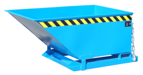 Die wichtigsten Maße des Bauer Kippbehälters auf einen BlickDer Kippvorgang wird bequem über eine Handgriff an der Rückseite manuell ausgelöst. Zum Schutz vor unbeabsichtigtem Auskippen rastet die Federkippsicherung beim Zurückführen des Behälters automatisch ein. Der Kippbehälter ist auch für die Aufnahme von Flüssigkeiten geeignet - öl- und wasserdicht verschweißt. Hohe Stabilität durch umlaufende gekantete Randverstärkung. Robuste Konstruktion aus Stahl mit Lackierung in RAL5012 Lichtblau. Zum einfachen Transportieren und Entleeren nehmen Sie den Kippbehälter einfach mit dem Stapler über die Einfahrtaschen auf und bringen ihn auf die gewünschte Position und erforderliche Höhe.