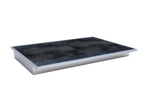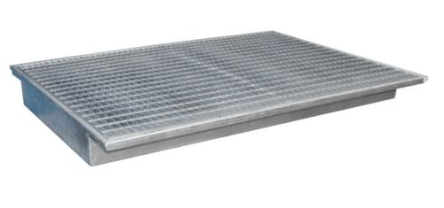 Mit der einhängbaren Auffangwanne rüsten Sie Palettenregale oder andere Regalsysteme schnell und gesetzteskonform für die Lagerung von Gefahrstoffen um. Im Gegensatz zu anderen Auffangwannen wird die Einhängewanne nicht unter das Regal, sondern direkt als eigene Ebene auf die Längstraversen aufgelegt. Durch den Überstand an den Längsseiten entsteht eine sichere Auflagefläche. Die Wanne ist damit zwischen den Längstraversen eingelassen und ein verrutschen ist nicht möglich.