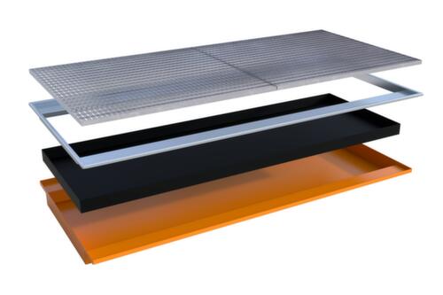Mit der einhängbaren Auffangwanne rüsten Sie Palettenregale oder andere Regalsysteme schnell und gesetzteskonform für die Lagerung von Gefahrstoffen um. Im Gegensatz zu anderen Auffangwannen wird die Einhängewanne nicht unter das Regal, sondern direkt als eigene Ebene auf die Längstraversen aufgelegt. Durch den Überstand an den Längsseiten entsteht eine sichere Auflagefläche. Die Wanne ist damit zwischen den Längstraversen eingelassen und ein verrutschen ist nicht möglich.