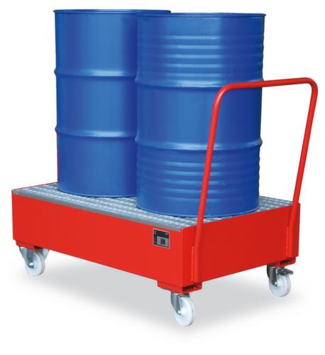 "description": "f. 2x200l Fass, Auffangvol. 200l, HxBxT 515x1200x800mm, m. Gitterrost, Schiebebügel, Stahl, RAL5012",