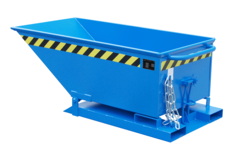 Die wichtigsten Maße des Bauer Kippbehälters auf einen BlickDer Kippvorgang wird bequem über eine Handgriff an der Rückseite manuell ausgelöst. Zum Schutz vor unbeabsichtigtem Auskippen rastet die Federkippsicherung beim Zurückführen des Behälters automatisch ein. Der Kippbehälter ist auch für die Aufnahme von Flüssigkeiten geeignet - öl- und wasserdicht verschweißt. Hohe Stabilität durch umlaufende gekantete Randverstärkung. Robuste Konstruktion aus Stahl mit Lackierung in RAL5012 Lichtblau. Zum einfachen Transportieren und Entleeren nehmen Sie den Kippbehälter einfach mit dem Stapler über die Einfahrtaschen auf und bringen ihn auf die gewünschte Position und erforderliche Höhe.