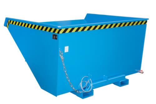 Der Kippvorgang wird bequem vom Fahrersitz aus per Zugseilentriegelung ausgelöst. Die besondere Anordnung des Drehpunktes sorgt für die restlose und schnelle Entleerung. Dabei gewährleistet die staplerschonende Abrollmechanik durch Ausnutzung des günstigen Lastenschwerpunktes ein sanftes Abkippen ohne Schlagbelastung. Durch die Kippsicherung wird sichergestellt, dass der Behälter während des Transportes nicht unbeabsichtigt auskippt. Der Kippbehälter ist auch für die Aufnahme von Flüssigkeiten geeignet - öl- und wasserdicht verschweißt. Aufgefangene Flüssigkeiten, wie Öl oder Wasser, werden durch ein Sieb von den Feststoffen getrennt und können zeitsparend über ein Ablasshahn abgelassen werden, ohne den Container kippen zu müssen. Wände geschlossen. Hohe Stabilität durch umlaufende gekantete Randverstärkung und stabilen Grundrahmen. Zum einfachen Transportieren und Entleeren nehmen Sie den Kippbehälter einfach mit dem Stapler über die Einfahrtaschen auf und bringen ihn auf die gewünschte Position und erforderliche Höhe.
