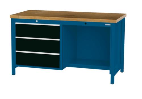 Bedrunka + Hirth Werkbank mit Buche-Massivholzplatte Gestell in vielen Farben, 3 Schubladen, 1/2 Ablageboden