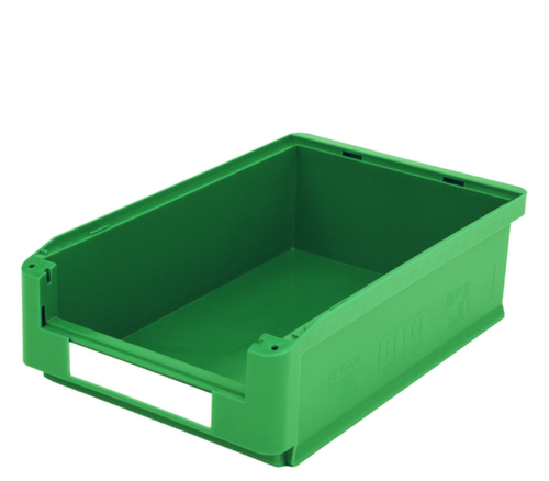 Aus bruchsicherem Polypropylen in grün. Temperaturbeständig von -20 °C bis +90 °C. Lebensmittelecht, geeignet für unverpackte Lebensmittel nach RAL A 74, cadmiumfrei. Boden angeraut. Einfacher Transport durch stirnseitige Griffmulde. Mit Etikettierfläche. Geeignet für Rollenbahnen und Durchlaufregale.