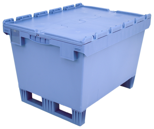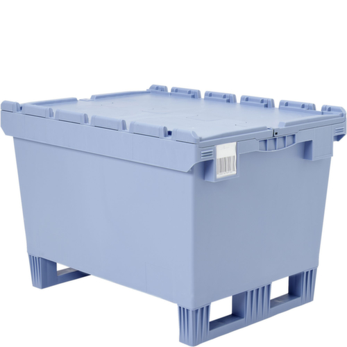 Im Euromaß. Aus bruchsicherem Polypropylen in taubenblau. Das Lagergut lässt sich durch die geschlossenen Wände vor Staub geschützt lagern und der Behälter lässt sich leicht reinigen. Boden geschlossen mit Verstärkung durch Verstärkungsrippen. Krokodildeckel. Für das einfache Versetzen und Einfahren mit einem Stapler sorgen die Kufen. Platzsparend ineinander stapelbar. Für Rollenbahnen geeignet.