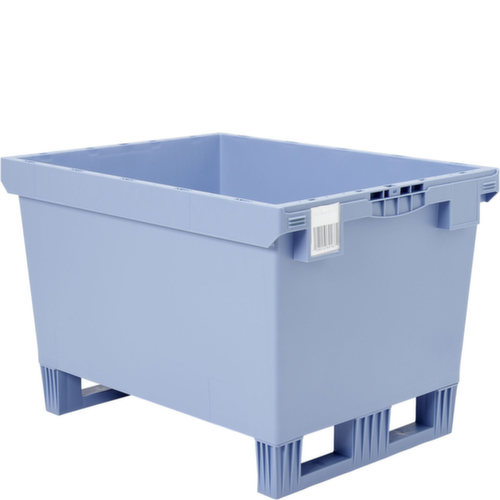 Im Euromaß. Aus bruchsicherem Polypropylen in taubenblau. Das Lagergut lässt sich durch die geschlossenen Wände vor Staub geschützt lagern und der Behälter lässt sich leicht reinigen. Boden geschlossen mit Verstärkung durch Verstärkungsrippen. Für das einfache Versetzen und Einfahren mit einem Stapler sorgen die Kufen. Platzsparend ineinander stapelbar. Für Rollenbahnen geeignet.