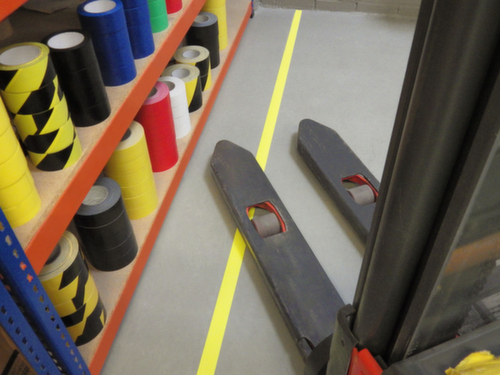 "longDescription": "<h2>Bodenmarkierungsband</h2><strong>für Innenbereiche mit hohem Verkehrsaufkommen</strong><br><ul><li><strong>Markiert klar und deutlich schützenswerte Bereiche</strong> wie Verkehrs- und Gehwege</li><li><strong>Robust und farbintensiv</strong> - aus durchgefärbtem, 3-lagigem PVC</li><li><strong>Temperaturbeständig</strong> von -10°C - +65°C</li><li><strong>Dauerhafter und sicherer Halt</strong> - haftet auf allen sauberen, trockenen, fettfreien, geschlossenen und offenporigen Böden</li><li><strong>Einfach bei Umstrukturierungen</strong> - lässt sich problemlos wieder entfernen</li></ul>",