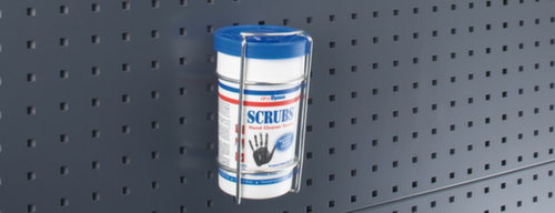 "metaDescription": "bott Halter für Tuchbox - f. Lochplatte, HxBxT 210x130x130mm",