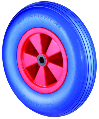 "description": "Polyurethanbereifung mit Rillen- oder Stollenprofil, in verschiedenen Bauweisen, mit Kunststoff- oder Stahlblechfelge, mit Rollenlager",
