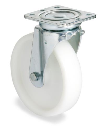 "description": "Traglast bis 600 kg, Kunststoff, in verschiedenen Bauformen und Raddurchmessern, mit Kunststofffelge und Rollenlager",
