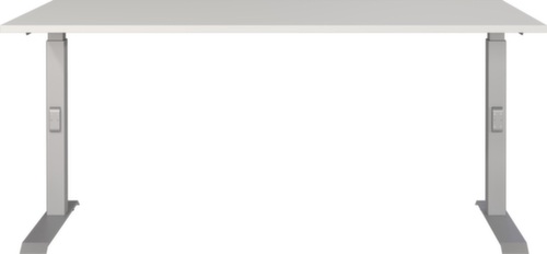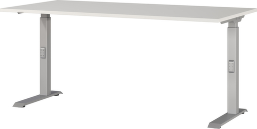 Platte aus Spanplatte mit kratzfester und pflegeleichter Melaminharzbeschichtung. Kante Alle Kanten sind durch schlagfeste ABS-Umleimer vor unschönen Rissen und Ausbrechen geschützt. C-Fußgestell aus Metall mit schlag- und kratzfester Pulverbeschichtung. Höhenverstellung durch Mechanik. Gestell mit nivellierbaren Kunststoffgleitern, mit denen sich Bodenunebenheiten optimal ausbessern lassen.