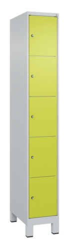 Die wichtigsten Maße des C+P Schließfachschrankes Classic Plus auf einen Blick:Korpus mit einfacher Flügeltür. Die innenliegenden Drehbolzen der einschlagenden Türen bieten den Vorteil einer sauberen Optik, da keine Schrauben oder Scharniere von außen sichtbar sind. Dadurch wird das Design des Schrankes nicht beeinträchtigt und das gesamte Möbelstück wirkt hochwertiger. Damit ist auch die glatte Oberfläche leichter zu reinigen, da keine Schmutz- oder Staubablagerungen an unzugänglichen Stellen zu befürchten sind. Jede Tür ist serienmäßig mit einer Anschlagsdämpfung ausgestattet, so dass, auch durch ein schwungvolles Schließen, die Tür nicht zuknallt. Das trägt nicht nur zu einer angenehmeren Geräuschkulisse bei, sondern schont auch den Stahlschrank vor Beschädigungen. Von der Natur inspiriert schafft der BIONIC Steel Frame eine besonders effiziente und stabile Konstruktion. Durch eine raffinierte innere Struktur aus Faltungen, Streben und Zwischenräumen, sowie höhere Materialstärke an entscheidenden Stellen, wie z. B. im vorderen Bereich der Seitenwände und in den Trennwand- und Kastenprofilen, wird die Verwindungssteifigkeit zusätzlich erhöht. Verschließbar mit Zylinderschloss. Die untergebauten Füße aus Kunststoff verleihen dem Schrank nicht nur ein modernes und leichtes Erscheinungsbild und lassen ihn weniger massiv wirken, sondern bieten auch praktische Vorteile. Der offene Raum über dem Boden erleichtert die Reinigung und das Material Kunststoff bietet einen erhöhten Korrosionsschutz. Gerade in Umgebungen mit höheren Hygieneansprüchen ist dies ein wichtiger Aspekt. Konstruktion aus Stahl, stabil verschweißt. Das macht die Konstruktion besonders robust und widerstandsfähig und somit langlebiger. Die verschweißten Ecken und Kanten des Korpus gewährleisten eine höhere Dichtigkeit und somit eine bessere Schutzfunktion gegen Staub, Feuchtigkeit und Schmutz als eine geschraubte Konstruktion. Zudem sind keine regelmäßigen Wartungsarbeiten und Nachjustierungen nötig. Korpus mit Einbrennlackierung in RAL7035 Lichtgrau. Front mit Einbrennlackierung in RDS 110 80 60 Viridingrün.