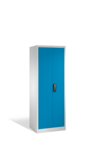 Die wichtigsten Maße des C+P Universalschrankes ERGO auf einen Blick:Der Schrankkorpus ist aus Stahlblech gefertigt und stabil verschweißt. Das macht die Konstruktion besonders robust und widerstandsfähig und somit langlebiger. Die verschweißten Ecken und Kanten des Korpus gewährleisten eine höhere Dichtigkeit und somit eine bessere Schutzfunktion gegen Staub, Feuchtigkeit und Schmutz als eine geschraubte Konstruktion. Zudem sind keine regelmäßigen Wartungsarbeiten und Nachjustierungen nötig. Hohe Flexibilität der Inneneinrichtung durch Verstellbarkeit der Fachhöhen im Raster von 15 mm. Ausgestattet mit Böden. Über die Doppelflügeltür ist der Zugriff auf den Schrankinhalt besonders komfortabel. Das innenliegende Kastenprofil und die allseitige Abkantung erhöhen die Steifigkeit der Türen und macht sie widerstandsfähiger gegen Verformungen. Dadurch können sie auch stärkeren Belastungen standhalten und bieten einen hohen Diebstahlschutz. Verschließbar mit dem Griffschloss Ergo-Lock. Durch den großzügigen, ergonomischen Griffbügel lässt sich der Stahlschrank, auch mit Handschuhen, ganz einfach öffnen und durch den patentierten Mechanismus noch einfacher durch zudrücken wieder schließen. Für einen kontrollierten Zugriff auf den Inhalt ist das Ergo-Lock standardmäßig mit einem Sicherheitszylinderschloss ausgestattet. Die 3-Punkt-Verriegelung bietet hohe Stabilität und einen effektiven Einbruchschutz. Der untergebaute Sockel sorgt dafür, dass das Gewicht des Schrankes gleichmäßig auf dem Boden verteilt wird. Dies erhöht die Stabilität und der Schrank kann schwerer Lasten aufnehmen, als ein Schrank mit Füßen. Außerdem können Schmutz, Staub und Feuchtigkeit nicht unter den Schrank gelangen, was die Reinigungsfläche verkleinert.