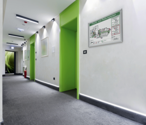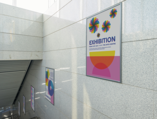 Rahmen aus Aluminium eloxiert in silber. Ecken auf Gehrung. Front aus UV-Schutzfolie. Rückwand aus schlagzähem Polystyrol. Rückseite mit selbsthaftenden Streifen. Lieferumfang: inklusive Montagematerial.