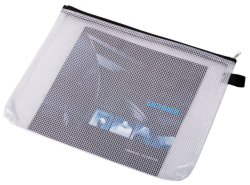 "description": "transparent mit farbigem Reißverschluss, für verschiedene Formate",