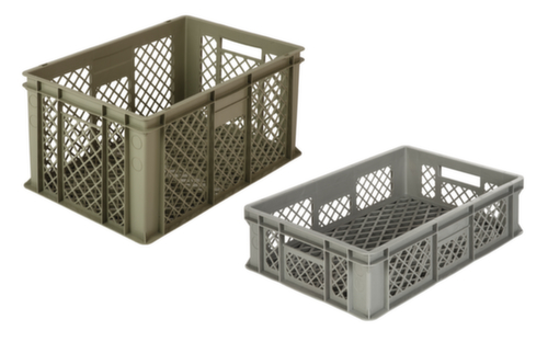 "longDescription": "<h2>Euronorm-Stapelbehälter</h2><strong>ideal für Gläser oder Fertigungsteile</strong><br><ul><li><strong>Umweltfreundlich und formbeständig</strong> - aus schlagfestem Polyethylen</li><li><strong>Optimale Luftzirkulation</strong> - Wände und Boden durchbrochen</li><li><strong>Einfach zu tragen</strong> mit Durchfassgriffen an den Stirnseiten</li><li><strong>Lebensmittelecht</strong> und kurzfristig Temperaturbeständig bis +90°</li></ul><br><strong>Gut zu wissen!</strong><br><br>Sie möchten den Behälter individuell einteilen? Dann bestellen Sie die passenden Fachwerkeinsätze gleich mit. Diese sind wahlweise für unten oder oben erhältlich. Bitte der Bestellung angeben. <br>",