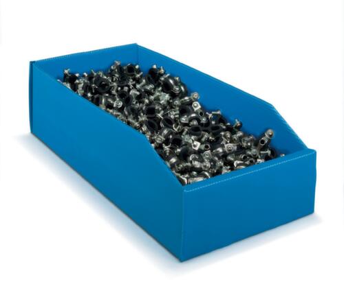 "metaDescription": "Faltbarer Sichtlagerkasten, blau, Tiefe 380 mm, Polypropylen - HxBxT 70/103x180x380mm, PP, blau",
