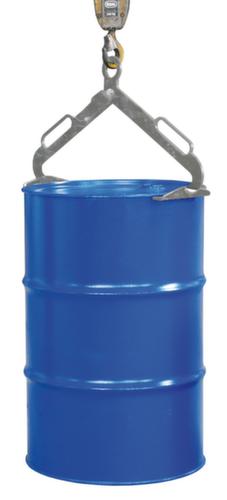 "metaDescription": "Fassklemme - Traglast 0,36 t, für liegende 200 l Metallfässer, verzinkt oder RAL2000",