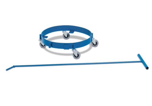 "description": "Tragl. 100kg, Ladefl. Ø 400mm, 1x60l Fass, Plattform offen, RAL5010,4 Lenkrollen",