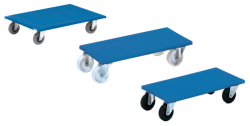 "description": "Tragl. 250kg, Ladefl. LxB 600x300mm, Sperrholzplatte, blau, 4 Lenkrollen, Vollgummi-Bereifung",