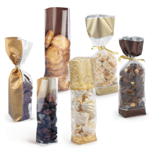 Parce que l'amour ne passe pas seulement par l'estomac, mais aussi par le sachet ! Les sachets en plastique imprimés avec fond en carton sont l'emballage de présentation idéal pour vos biscuits, chocolats ou autres aliments avec lesquels vous voulez faire plaisir. Les sachets transparents imprimés en film PP confèrent aux friandises dans le sachet à biscuits un petit air de fête. Choisissez parmi différents motifs délicats, élégants et festifs celui qui convient le mieux à vos besoins. Le fond en carton et le film PP de 35 µ d'épaisseur, agréé pour le contact alimentaire, assurent la stabilité et la solidité des sachets en plastique imprimés avec fond en carton. Vous pouvez facilement fermer les sachets de biscuits imprimés avec fond en carton à l'aide du ruban cadeau approprié, par exemple le ruban cadeau brillant ou une étiquette cadeau.