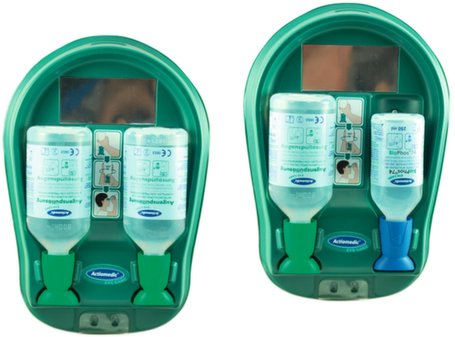"metaDescription": "actiomedic Station lave-yeux - avec couvercle transparent, solution saline 1x500 ml/solution de rinçage tampon 1x250 ml BioPhos®74",