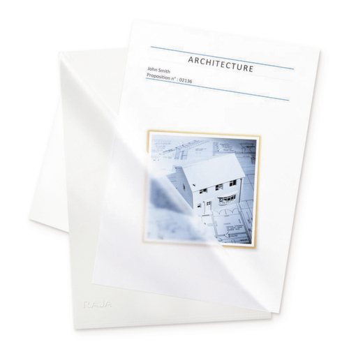 "longDescription": "<h2>Pochettes porte-documents RAJA PP 100 µ, transparentes</h2><p>Nos pochettes pour dossiers RAJA permettent un classement idéal des documents importants. Elles garantissent un quotidien organisé et sans stress au bureau. Les pochettes sont ouvertes en haut et sur les côtés et possèdent une découpe pour le pouce qui facilite le prélèvement de vos documents. La soudure robuste des bords assure la protection de vos documents. Les porte-documents RAJA sont disponibles en version lisse, souple et brillante. Elles sont également disponibles en transparent ou en couleurs assorties. Toutes les pochettes ont une taille de 22 x 32 cm et conviennent parfaitement aux documents A4. 3 qualités au choix : - PP 100 µ : surface grainée, rapport qualité/prix optimal (références 284872 et 284873) - PP 120 µ : surface grainée, non réfléchissante et antidérapante (référence 284874) - PVC 150 µ : très résistant, lisse, flexible et brillant (références 284875 et 284876) Pour garder les pochettes à portée de main, nous vous recommandons nos compartiments de rangement pratiques. Vous souhaitez archiver les documents ou même des dossiers entiers ? Dans ce cas, consultez nos boîtes d'archivage et de classement.</p><br>",