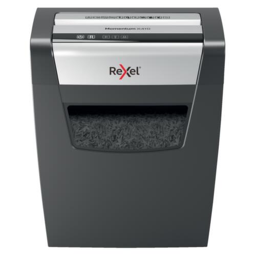 Les principales dimensions du destructeur de documents Momentum X410 en un coup d’œil :niveau de sécurité : Le niveau de sécurité P-4 n’autorise pas de coupe en bandes. Chaque particule peut être d’une largeur maximale de 6 mm sur un côté. Pour une feuille DIN A4, cela nécessite un déchiquetage en au moins 420 pièces. puissance 280 W.