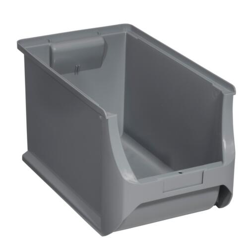 en plastique recyclé en gris. en matériau 100 % recyclé. résistant à la température de -10 °C à +60 °C. résistant contre les résines, alcalins, graisses et huiles. fond plein. avec porte-étiquettes pour une inscription individuelle et claire. Gerbage multiple grâce au bord de gerbage sur tout le pourtour et aux rails de guidage de bout en bout. Adapté aux convoyeurs à rouleaux.