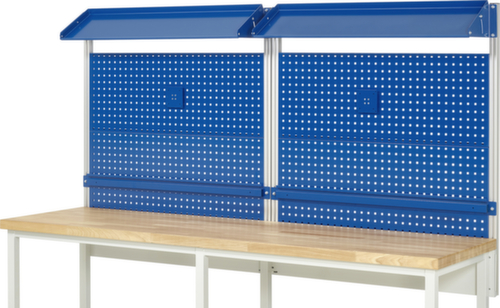 "Ausstattung_Aufbau": "2 kits de fixation avec 4 montants modulaires, 4 plaques perforées, 2 corbeilles à courrier en métal inclinables, 2 tablettes supérieures, 2 rails de maintien pour bacs à bec, 2 supports pour écran plat",