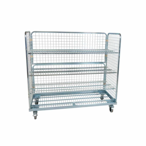 "description": "force 500kg, HxLxl 1850x620x1500mm, H utile 1490mm, 3 parois grillagées, porte, 4 tablettes, toit, acier, galv., panneau treillis, bandage élastique",