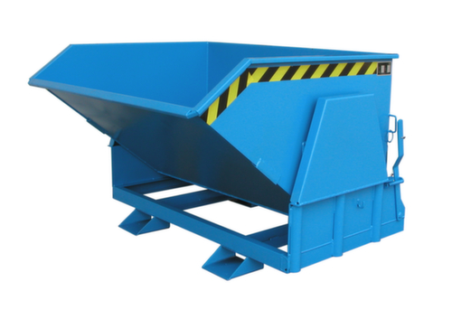 Le procédé de basculement est déclenché confortablement depuis le siège conducteur par déverrouillage du câble de traction. La disposition particulière du pivot garantit un vidage complet et rapide. Le mécanisme de déroulement ménageant le gerbeur garantit un basculement en douceur sans charge de chocs grâce au centre de gravité avantageux de la charge. Le mécanisme spécial est dissimulé pour une utilisation en toute sécurité. Après le vidage, la benne basculante retourne automatiquement à sa position initiale et la protection antibasculement se réenclenche automatiquement. Avec une chaîne de sécurité sur les fourreaux de fourche, la benne basculante peut également être fixée au gerbeur afin d’éviter qu’elle ne glisse . Structure robuste en acier avec laquage coloris RAL 5012 bleu clair. Pour transporter et vider la benne basculante facilement, il suffit de la saisir avec le gerbeur via les fourreaux de fourche, puis de la placer à la position et à la hauteur souhaitées.