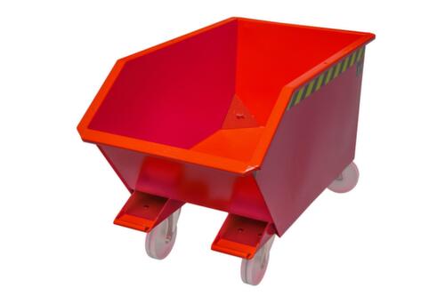 La benne basculante modèle bas est idéale comme récipient d’appoint sur une machine ou directement sous l’éjecteur de la machine.