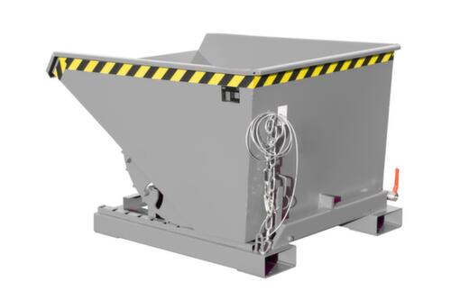 Le procédé de basculement est déclenché confortablement depuis le siège conducteur par déverrouillage du câble de traction. La disposition particulière du pivot garantit un vidage complet et rapide. Le mécanisme de déroulement ménageant le gerbeur garantit un basculement en douceur sans charge de chocs grâce au centre de gravité avantageux de la charge. La protection antibasculement garantit que la benne ne se renverse pas accidentellement pendant le transport. La benne basculante convient également pour la charge de liquides puisqu’elle est soudée de manière étanche à l’huile et à l’eau. Les liquides collectés, comme l’huile ou l’eau, sont séparés des matières solides par un tamis et peuvent être vidés rapidement via un robinet de vidange, sans devoir basculer le conteneur. parois plein. Grande stabilité grâce à des bords renforcés sur tout le pourtour et à un châssis stable. Pour transporter et vider la benne basculante facilement, il suffit de la saisir avec le gerbeur via les fourreaux de fourche, puis de la placer à la position et à la hauteur souhaitées.