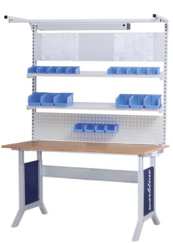 "description": "L 1500mm, a. colonnes port., paroi magn., plaque perf., tablettes, bacs à bec, lumière",