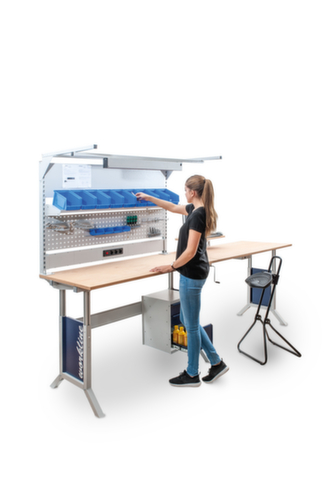 "metaDescription": "Bedrunka + Hirth Assemblage du panneau arrière complet - L 1500mm, a. colonnes port., paroi magn., plaque perf., tablettes, bacs à bec, lumière",