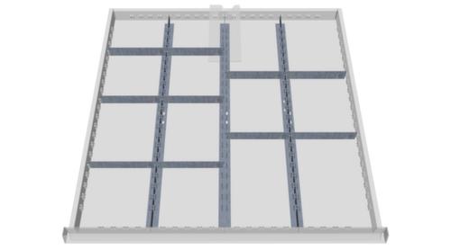 "metaDescription": "Bedrunka + Hirth Matériel de division des tiroirs pour établi - p. établi, 8sép.longitudinaux/2sép. en tôle, p. tiroirs lxP 600x600mm, face av. H 150mm",