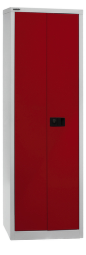 structure en acier. avec double porte battante. force par plateau 70 kg. Réglable au pas de 25 mm. avec poignée rabattable. verrouillable avec serrure à cylindre. Le verrouillage 3 points offre une grande stabilité et une protection anti-effraction efficace. soubassement : Le socle encastré permet de répartir uniformément le poids de l’armoire sur le sol. Cela augmente la stabilité et l’armoire peut supporter des charges plus lourdes qu’une armoire à pieds. De plus, la saleté, la poussière et l’humidité ne peuvent pas s’infiltrer sous l’armoire, ce qui réduit la surface de nettoyage. corps avec laquage en gris clair. face avant avec laquage en gris anthracite. niveaux avec laquage en gris clair.