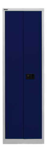 structure en acier. avec double porte battante. force par plateau 70 kg. Réglable au pas de 25 mm. avec poignée rabattable. verrouillable avec serrure à cylindre. Le verrouillage 3 points offre une grande stabilité et une protection anti-effraction efficace. soubassement : Le socle encastré permet de répartir uniformément le poids de l’armoire sur le sol. Cela augmente la stabilité et l’armoire peut supporter des charges plus lourdes qu’une armoire à pieds. De plus, la saleté, la poussière et l’humidité ne peuvent pas s’infiltrer sous l’armoire, ce qui réduit la surface de nettoyage. corps avec laquage en gris clair. face avant avec laquage en bleu Oxford. niveaux avec laquage en gris clair.