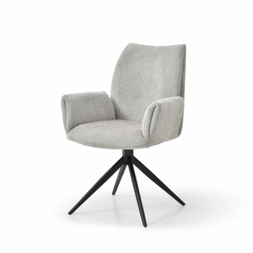 Équipement :piètement en étoile en tube rond-acier avec finition époxy résistante aux chocs et aux rayures en noir. Modèle avec accoudoirs rigides. assise en mousse dure rembourré. revêtement en tissu (100 % polyester) en portland. pivotement à 360°.